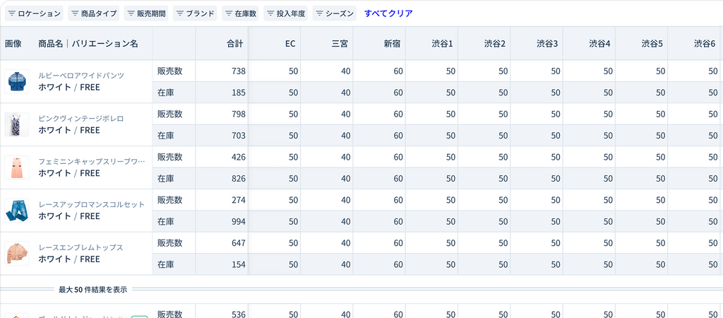 マスタデータの連携だけでなく、管理画面からEC・店鋪の販売実績や在庫数、売上情報などをリアルタイムで確認できます。
